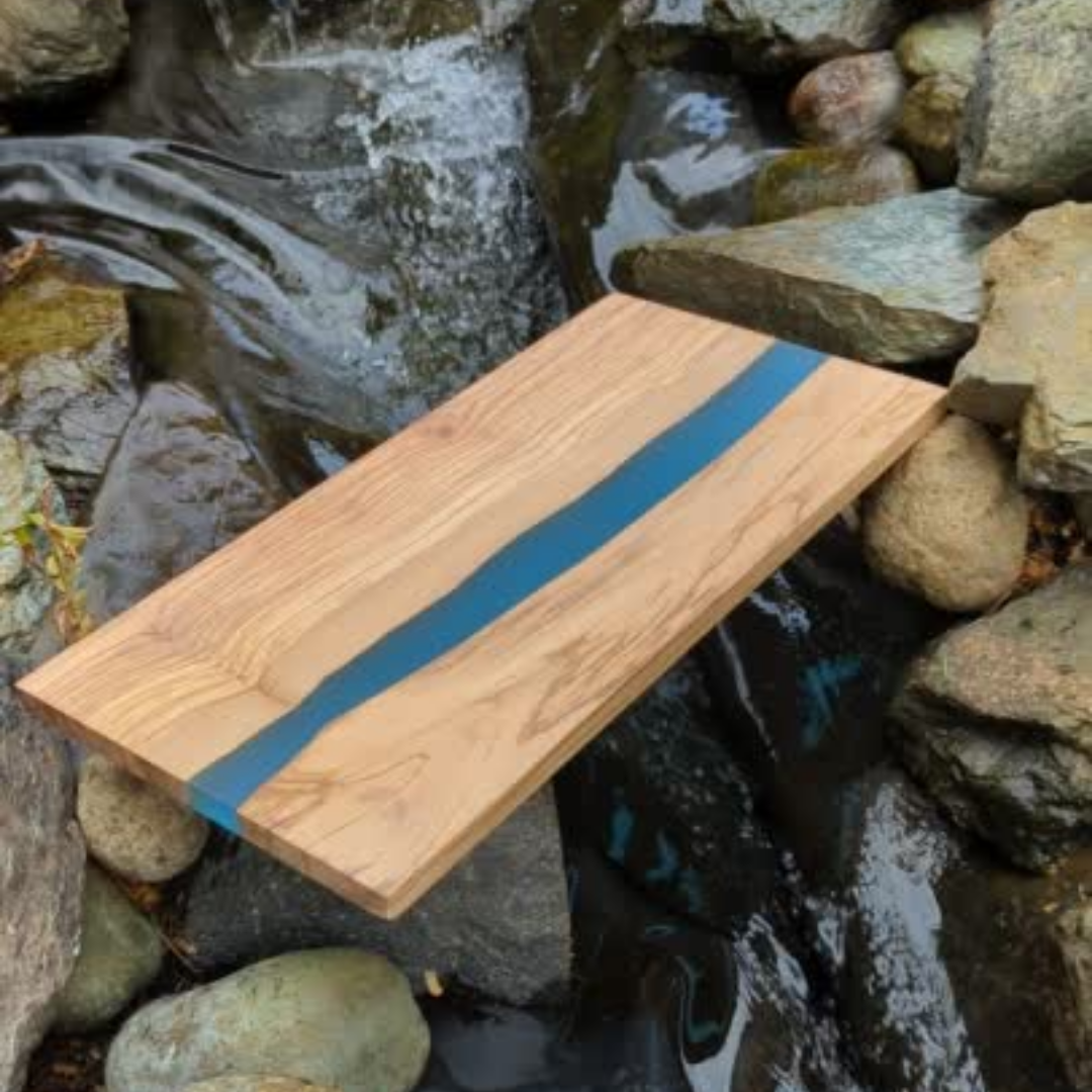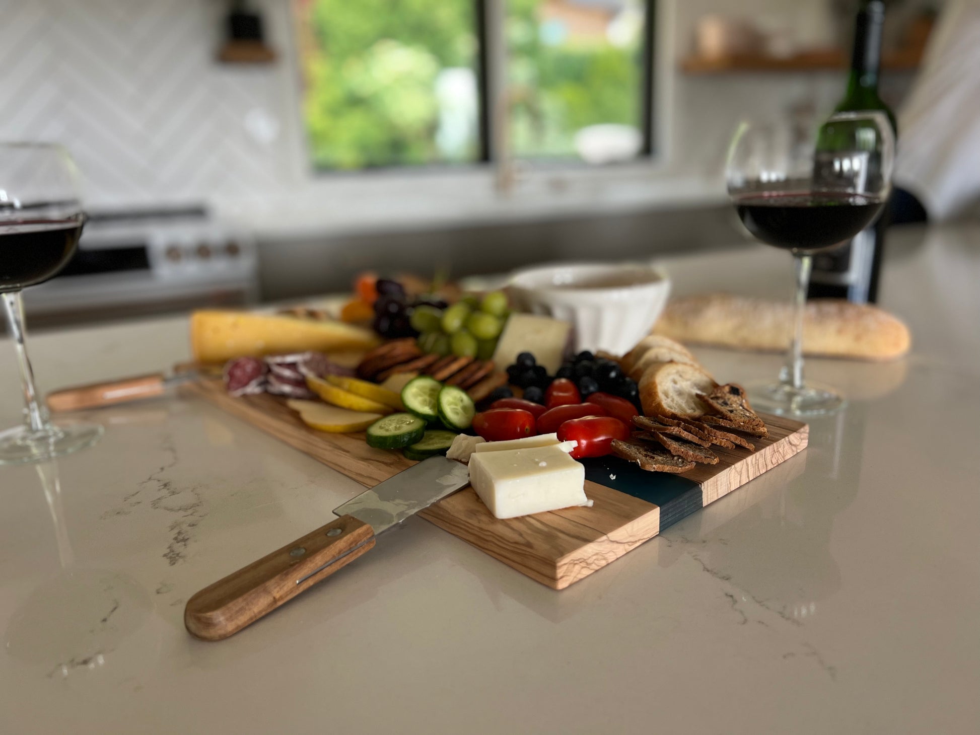 Epoxy resin is a composite liquid that hardens to an enamel-like finish. It's versatile, with an ability to mimic stone, gems, and other natural materials. It's also virtually indestructible, making it an ideal choice for charcuterie.
